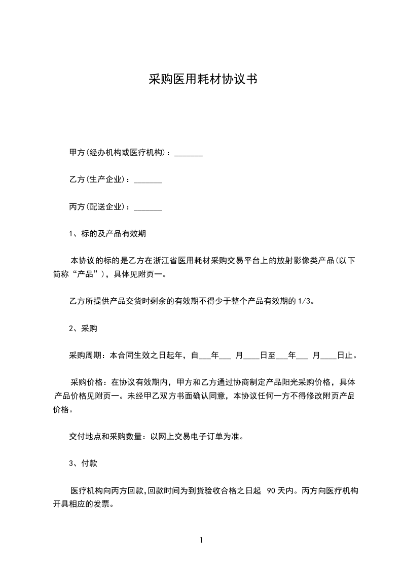医疗机构向丙方回款,回款时间为到货验收合格之日起90天内。丙方向医疗机构开具相应的发票。
