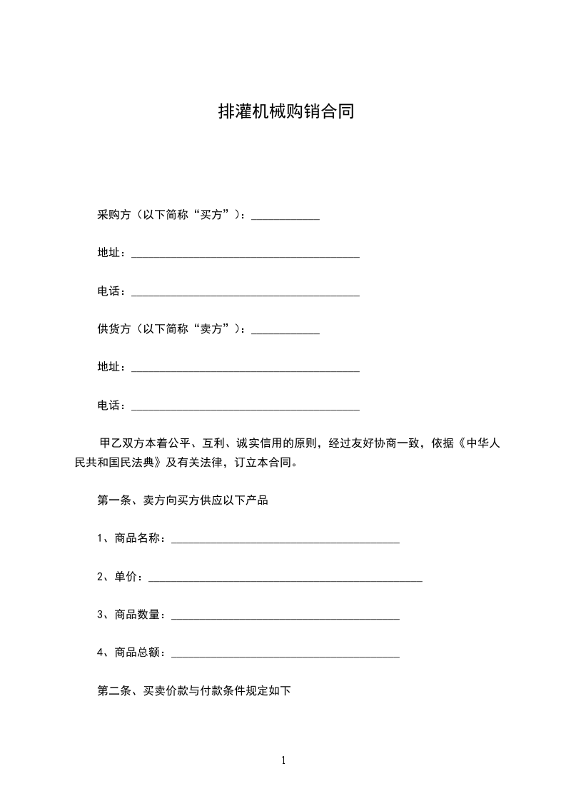 第一条、卖方向买方供应以下产品