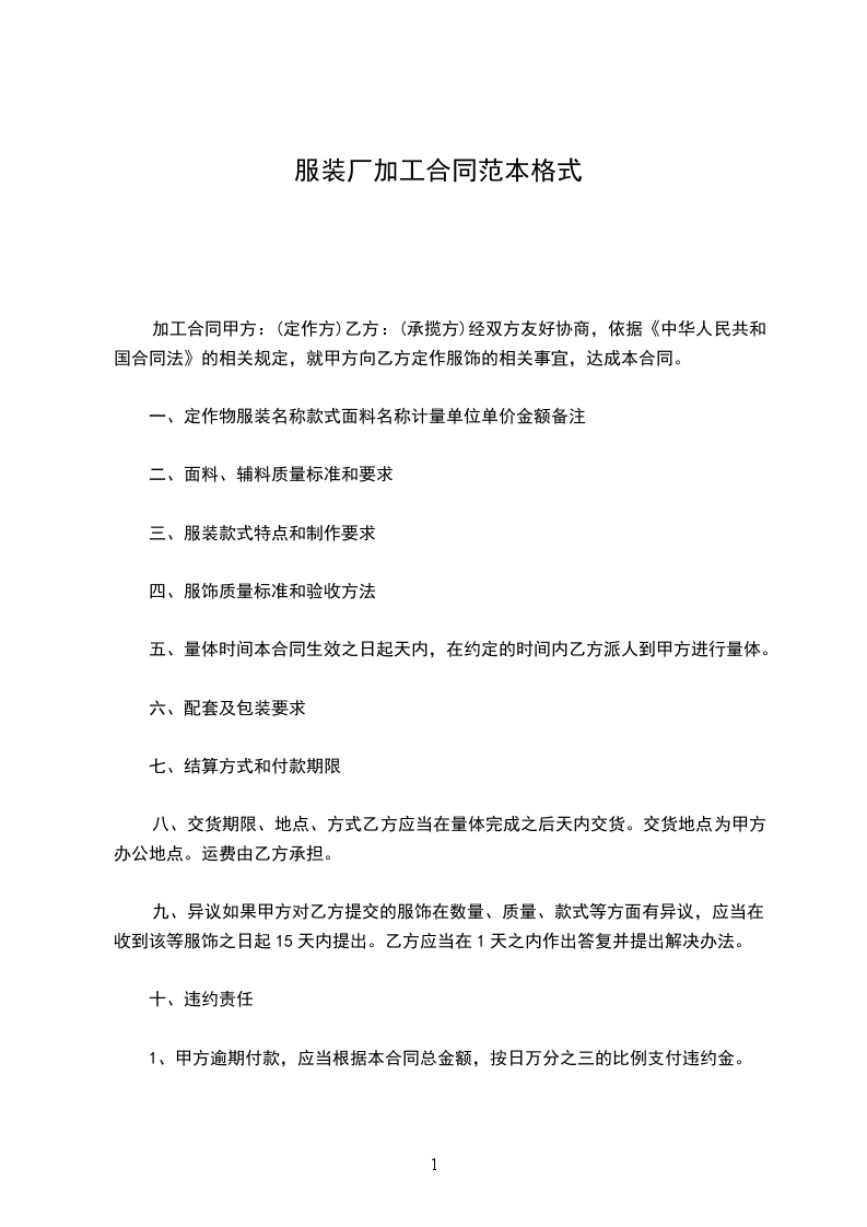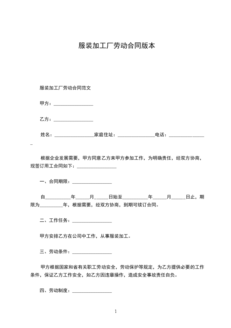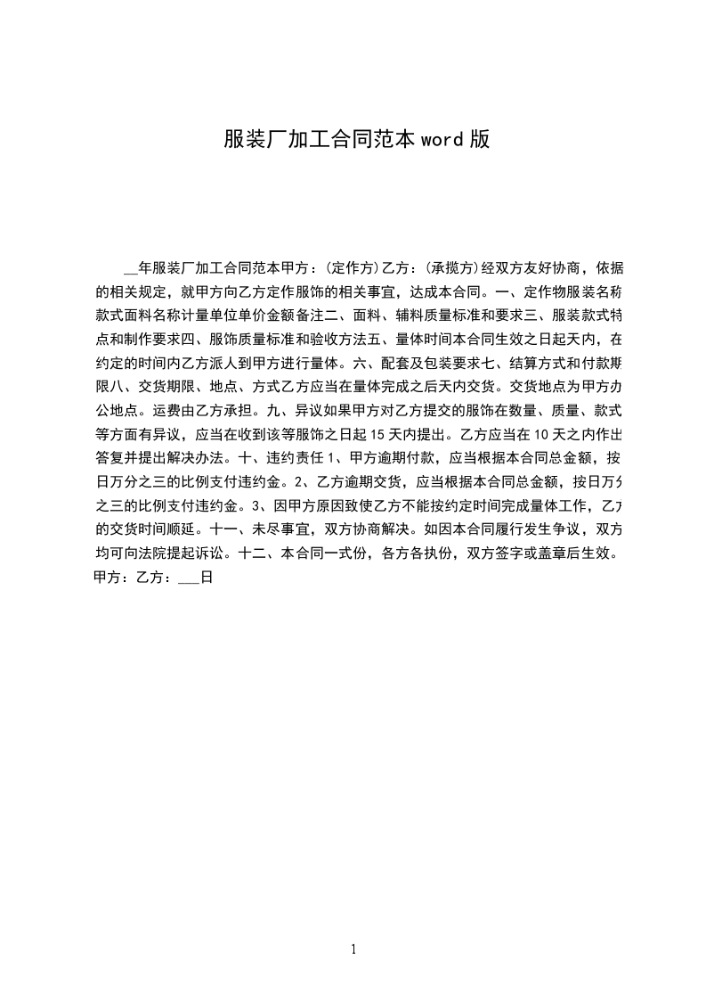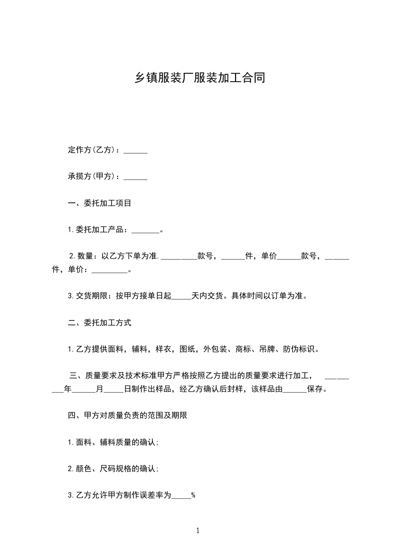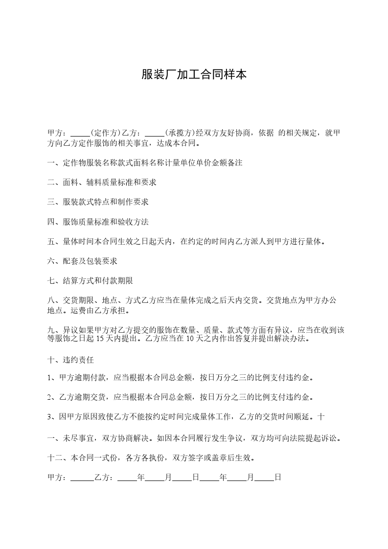 公司(以下简称甲方):代表:地址:电话:_______服装厂(以下简称乙方):代表:地址:电话:风险提示: