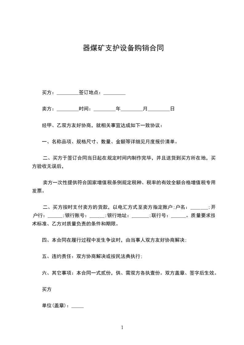 六、其它事项:本合同一式贰份,供、需双方各执壹份。双方盖章、签字后生效。