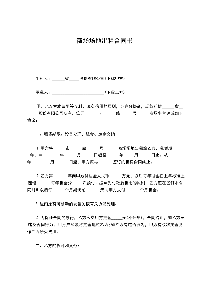 第八条甲方交付使用场地时,向乙方收取一个月的场地使用费作为保证金,合计人民币__元。保证金在乙方离场后的下一个水电费结算日可以结清水电费时一并结算,结算时只退本金,不计利息。