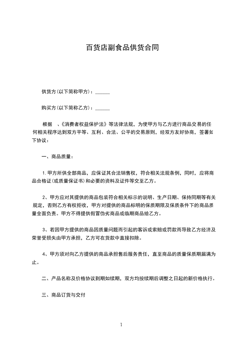 1、乙方保证所提供的产品货真价实,来源合法,无任何法律纠纷和质量问题,如果乙方所提供产品与第三方出现了纠纷,由此引起的一切法律后果均由乙方承担。