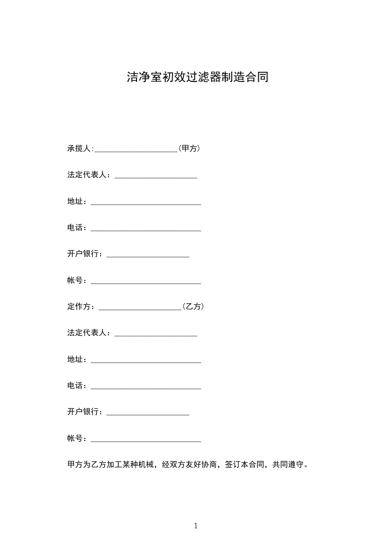 洁净室初效过滤器购销合同