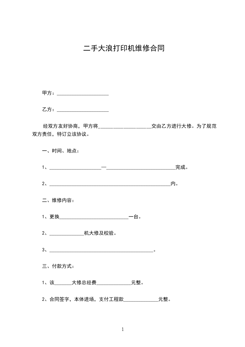 1、甲方供货无误的前提下,如乙方中途退货或使用其他同类产品,乙方应赔偿本合同金额_______________元给甲方作为违约金。