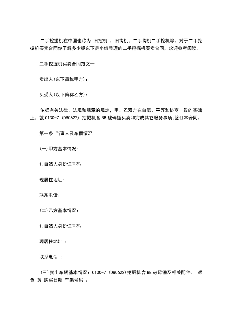 二手挖掘机在中国也称为 旧挖机 ,旧钩机,二手钩机二手挖机等。对于二手挖掘机买卖合同你了解多少呢以下是小编整理的二手挖掘机买卖合同,欢迎参考阅读。