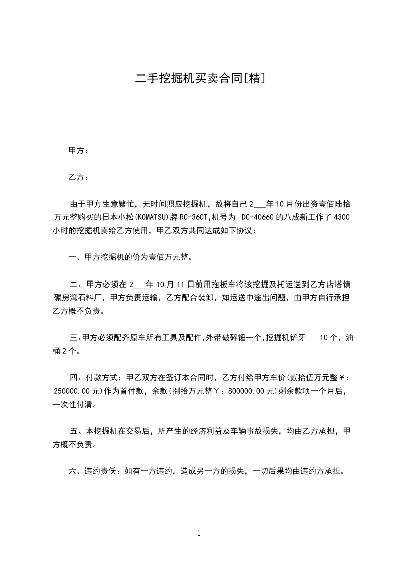 经甲乙双方共同协商,现甲方于 ________年 4____月 28____日将两台小松二手挖掘机、一台二手破碎器以总价人民币(大写) (小写: 元整 )售给乙方,具体协议如下: