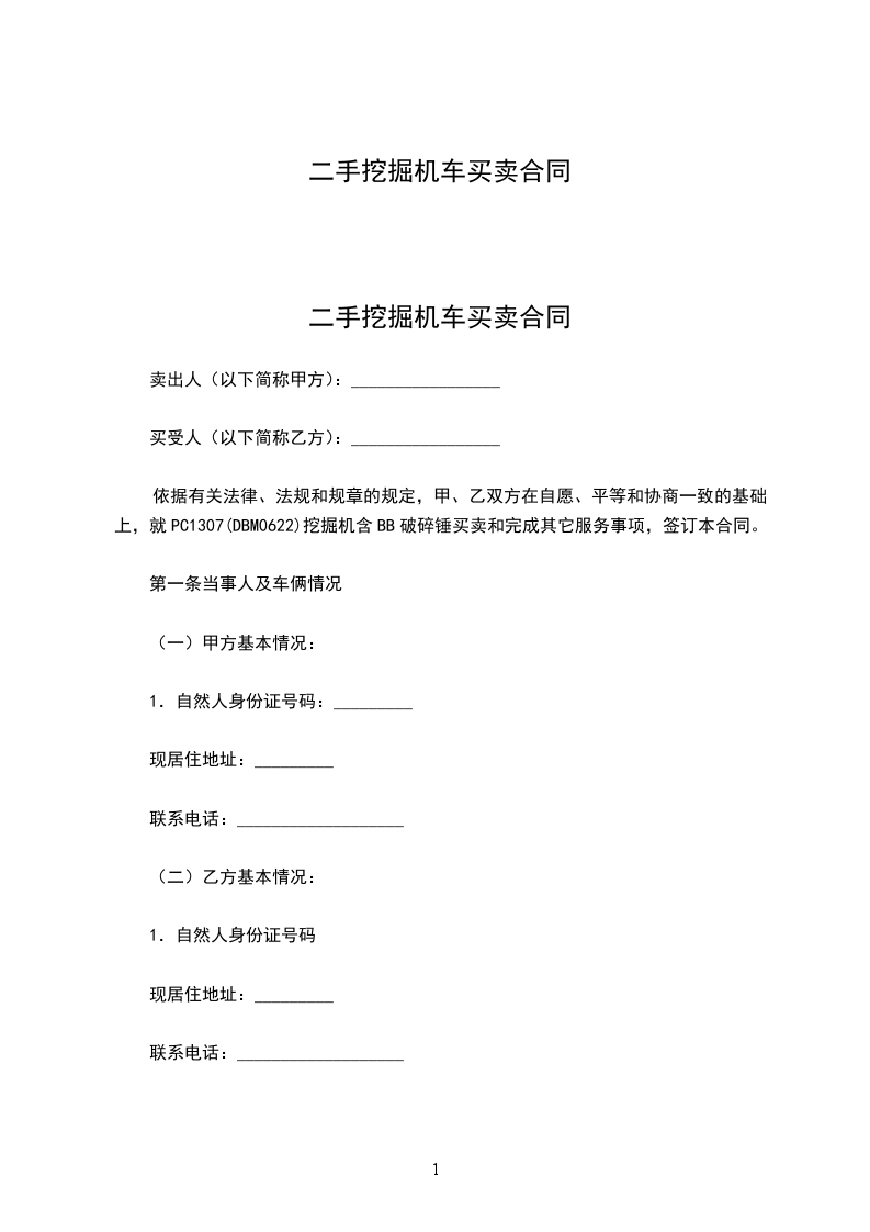 依据有关法律、法规和规章的规定,甲、乙双方在自愿、平等和协商一致的基础上,就C130-7 (DB0622) 挖掘机含BB破碎锤买卖和完成其它服务事项,签订本合同。