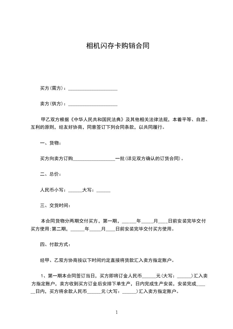 1、第一期本合同签订当日,买方即将订金人民币______元(大写:______)汇入卖方指定账户,卖方收到买方订金后安排下单生产,日内完成生产安装,安装完成______日内,买方将余款人民币______元(大写:______)汇入卖方指定账户。