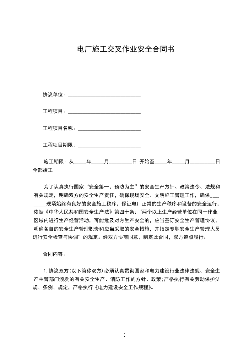 为了认真执行国家“安全第一,预防为主”的安全生产方针、政策法令、法规和有关规定,明确双方的安全生产责任,确保现场安全、文明施工管理工作,确保_________现场始终有良好的安全施工秩序,保证电厂正常的生产秩序和设备的安全运行,依据《中华人民共和国安全生产法》第四十条:“两个以上生产经营单位在同一作业区域内进行生产经营活动,可能危及对方生产安全的,应当签订安全生产管理协议,明确各自的安全生产管理职责和应当采取的安全措施,并指定专职安全生产管理人员进行安全检查与协调”的规定。经双方协商同意,制定此合同,双方遵照履行。