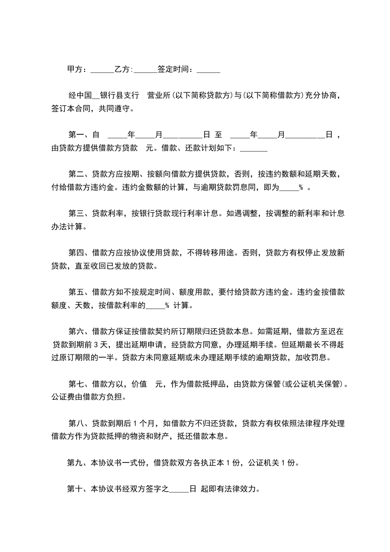 经中国__银行县支行 营业所(以下简称贷款方)与(以下简称借款方)充分协商,签订本合同,共同遵守。