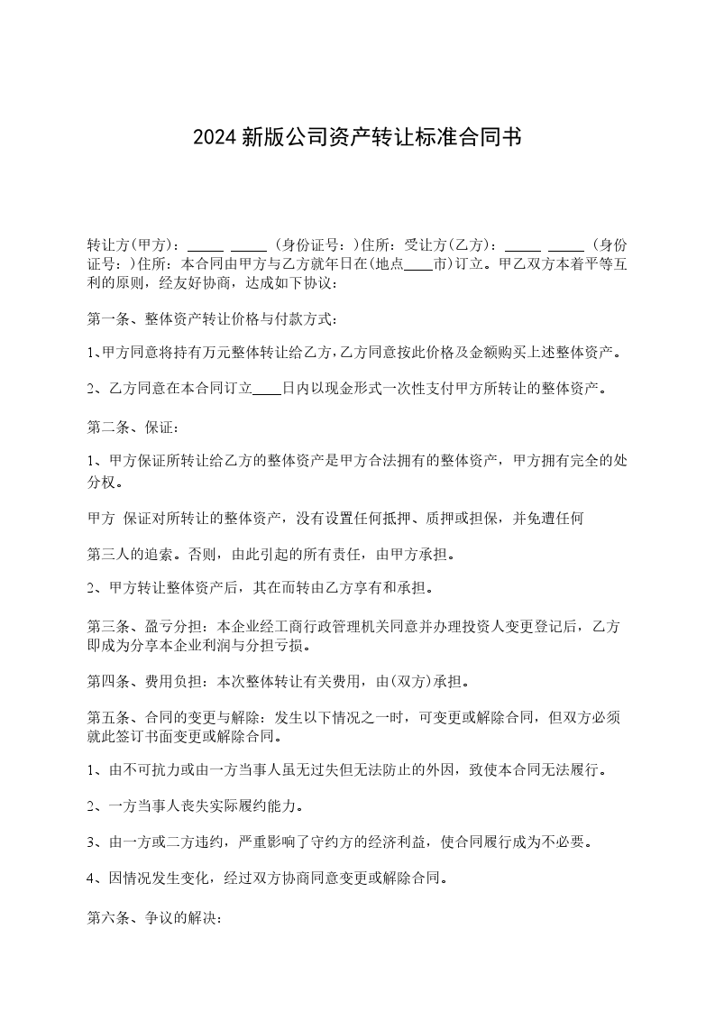 甲方: 乙方: 经甲、乙双方充分协商,甲方全体股东自愿,将甲方全部资产转让给乙方,有关转让事项双方订立合同条款如下: