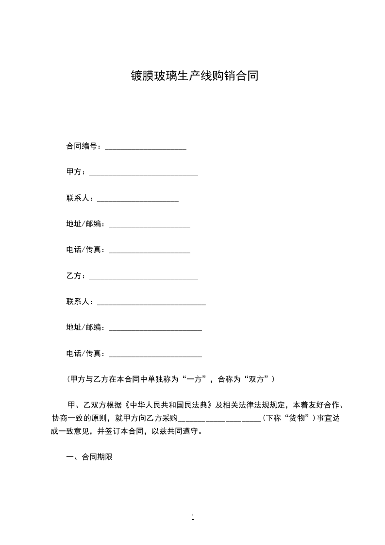 本合同有效期自_______年_______月_______日起至_______年_______月_______日止。甲方将于合同期内以订单(订单格式见附件一)形式向乙方采购货物。