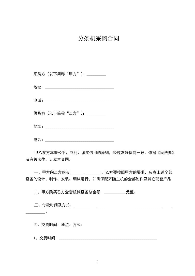 二、甲方购买乙方全套机械设备总金额:___________元整。