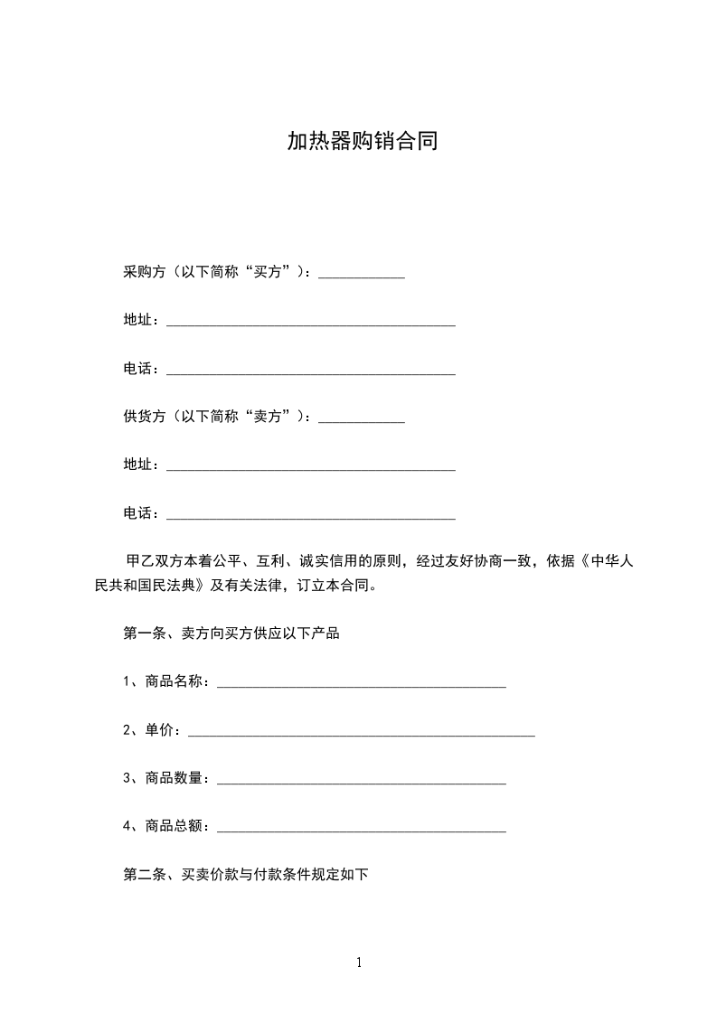 第一条、卖方向买方供应以下产品