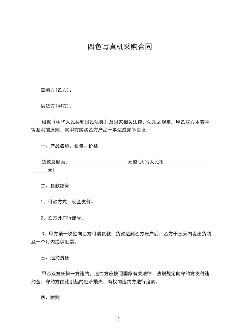3、甲方须一次性向乙方付清货款,货款达到乙方账户后,乙方于三天内发出货物及一个月内提供发票。