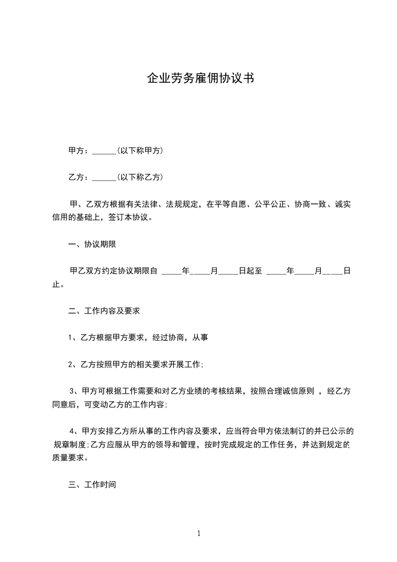 1、根据甲方工作需要和乙方自身技能特点,甲方聘用乙方在_________部门从事_________岗位(工种)工作,工作地点在__________范围内。