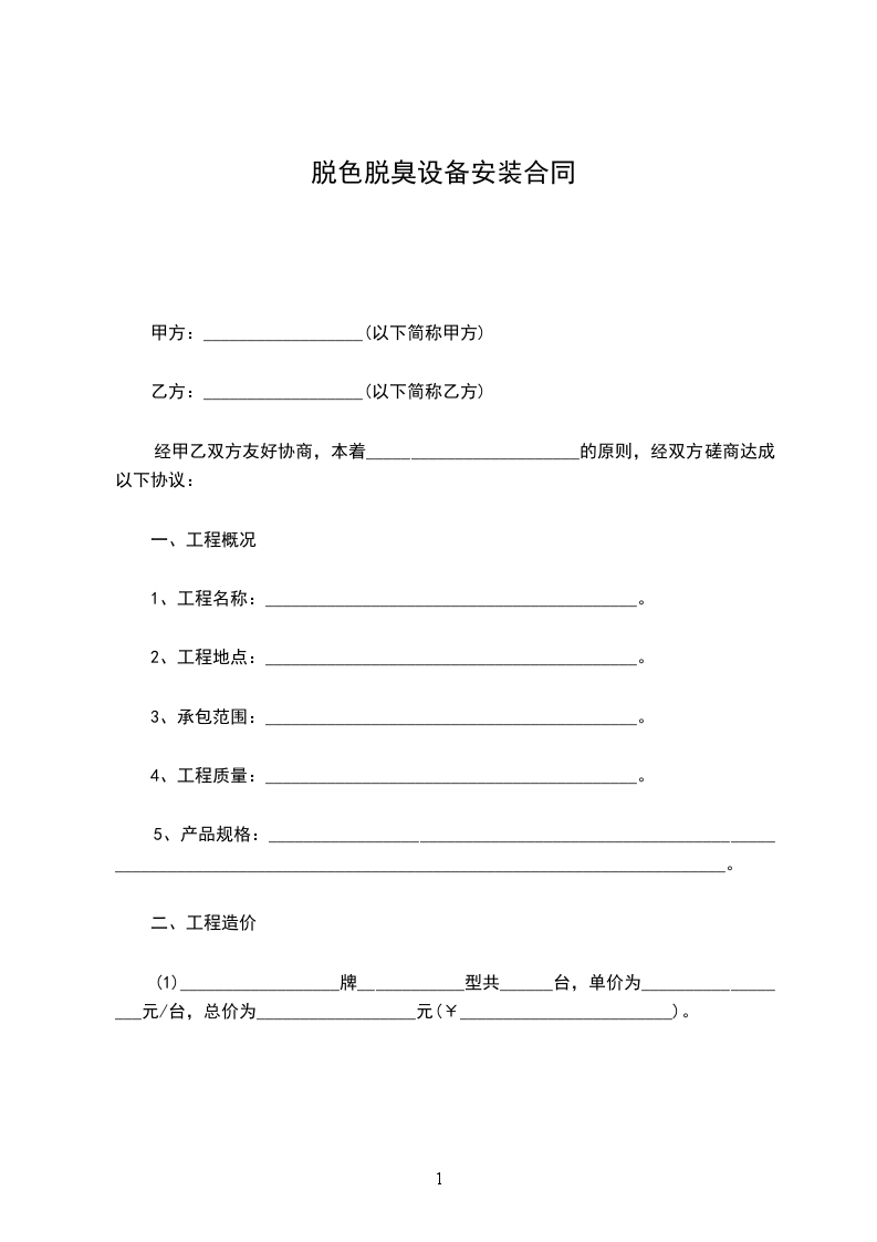 脱色脱臭设备采购合同