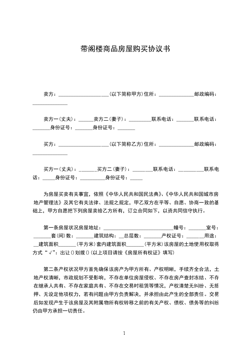 买方一(丈夫):_______买方二(妻子):________联系电话:__________联系电话:_____身份证号:__________身份证号:_____