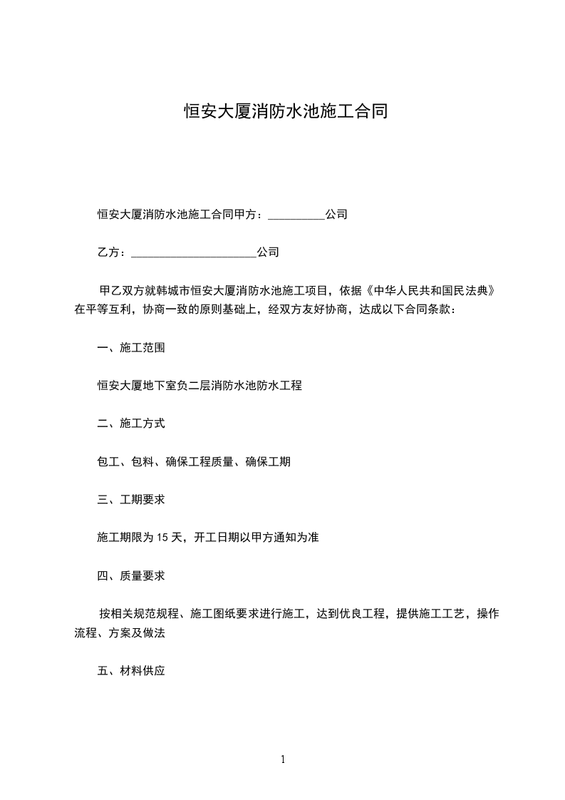 第四条合同工期