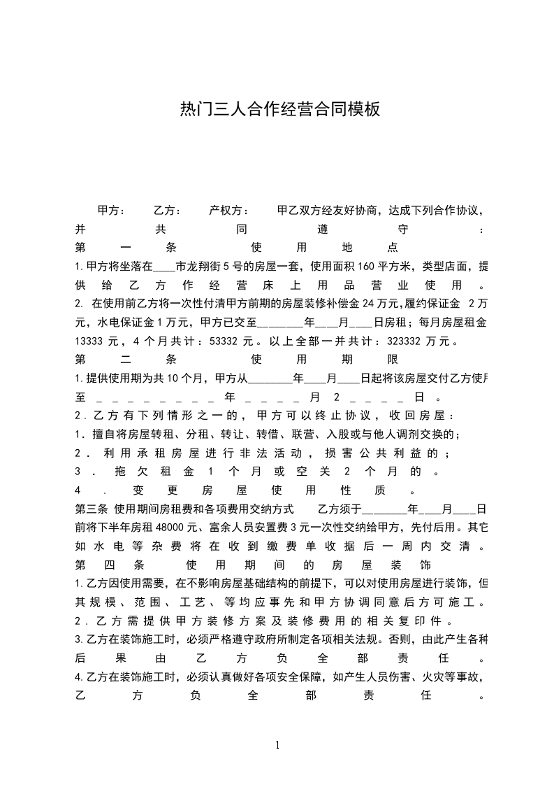 甲方: 乙方: 产权方: 甲乙双方经友好协商,达成下列合作协议,并共同遵守: