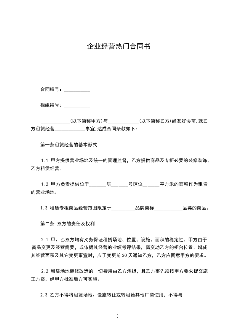 1.甲方将坐落在____市龙翔街5号的房屋一套,使用面积160平方米,类型店面,提供给乙方作经营床上用品营业使用。