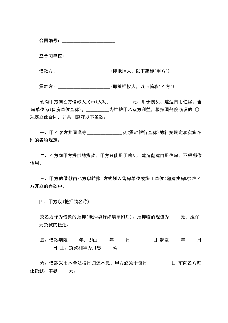 本合同项下甲方购买,建造,翻建,大修的住房作为借款的抵押担保,由甲,乙方另行签订《住房抵押合同》。甲方购买期房的,应将购房预售合同交乙方保管。