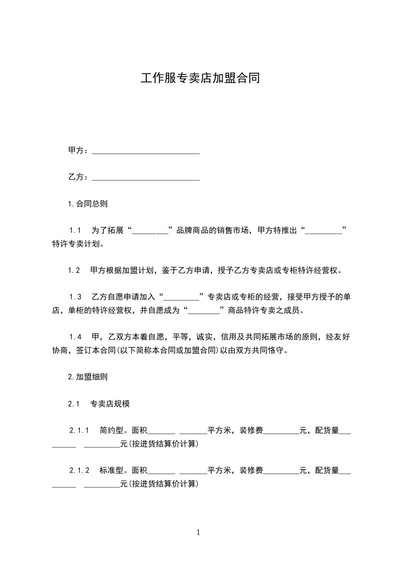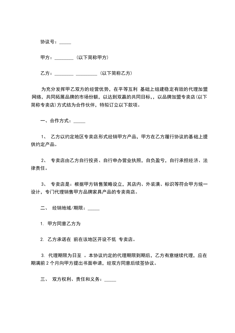 2.1 甲方倡导经营“_________”专卖事业,并拥有“_________”登记商标。甲方根据市场需要,在各个城市设立专卖店,专卖店负责本地区总店和分店的推广,开发工作。