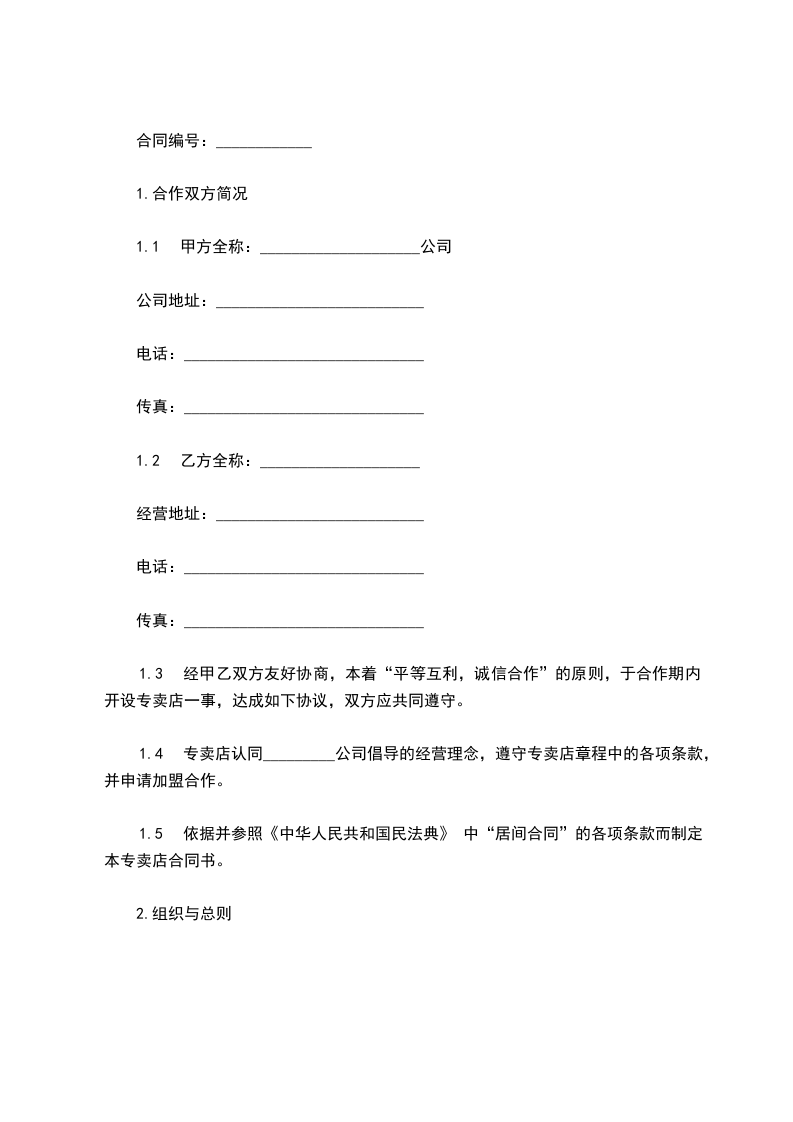 1.5 依据并参照《中华人民共和国民法典》 中“居间合同”的各项条款而制定本专卖店合同书。