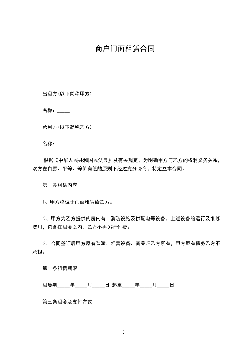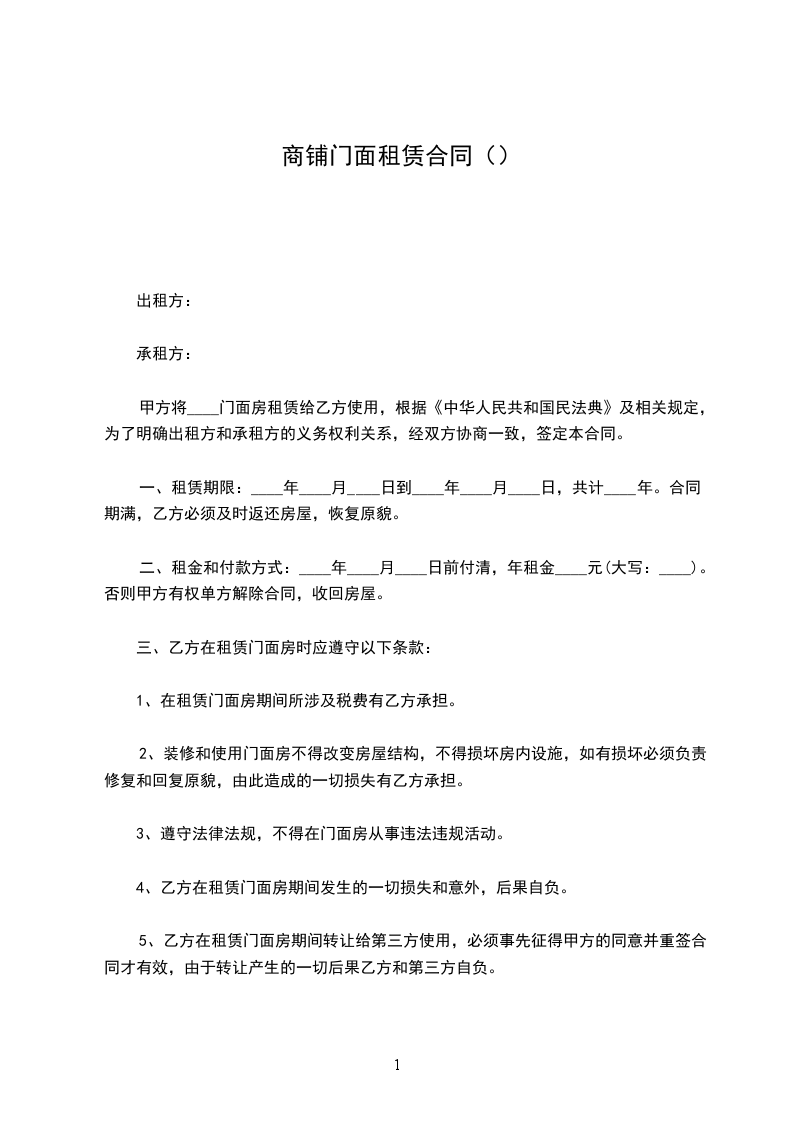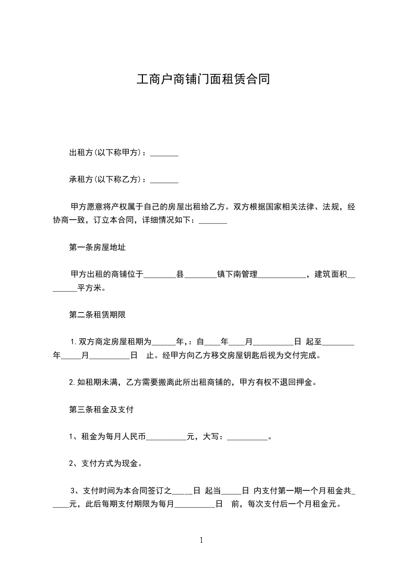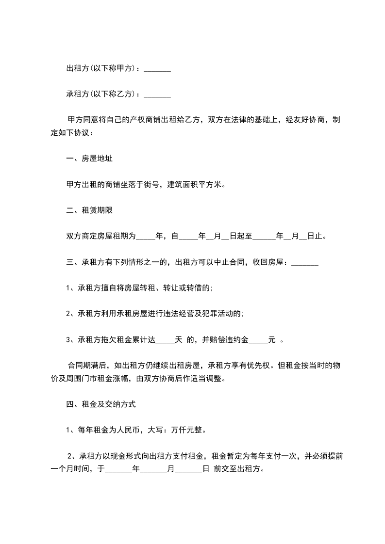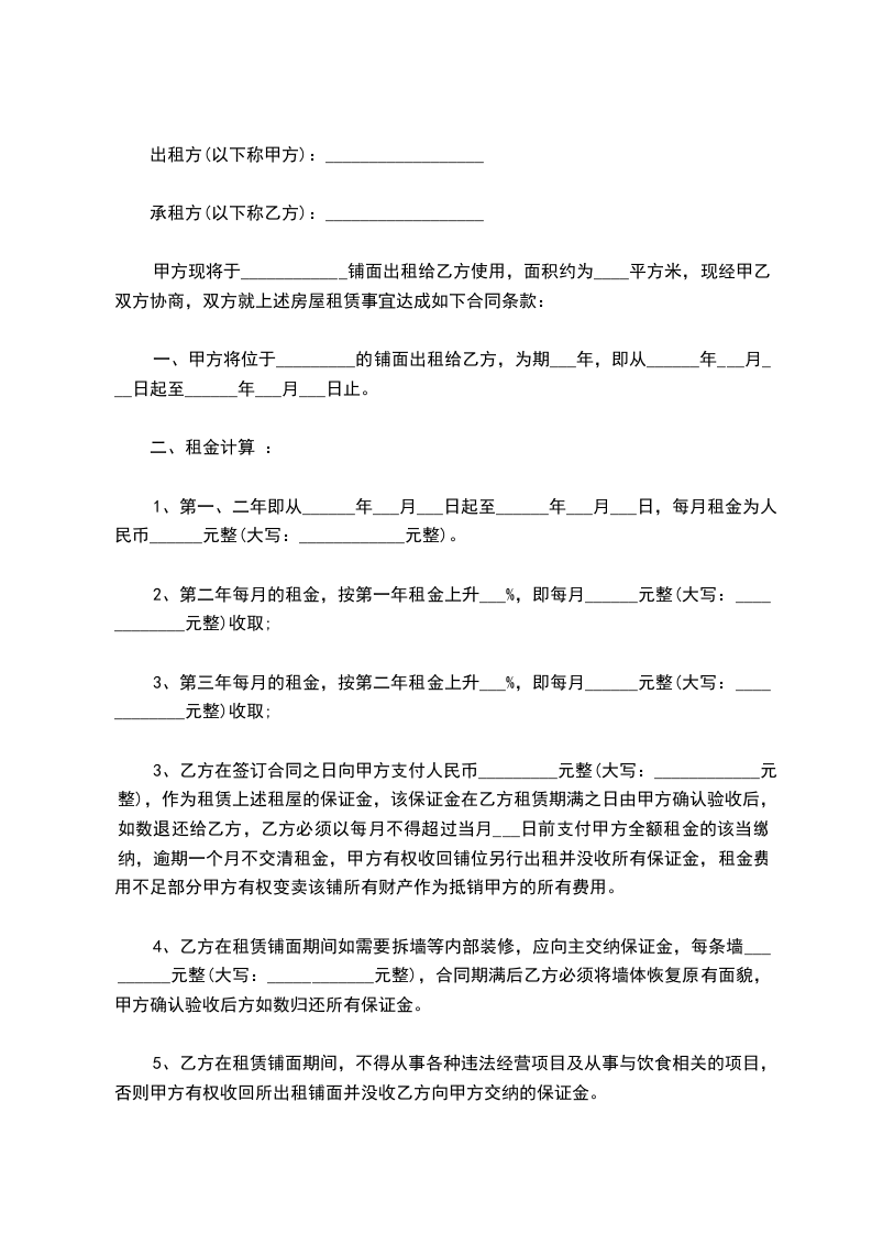 1、租金为每月人民币__________元,大写:__________。