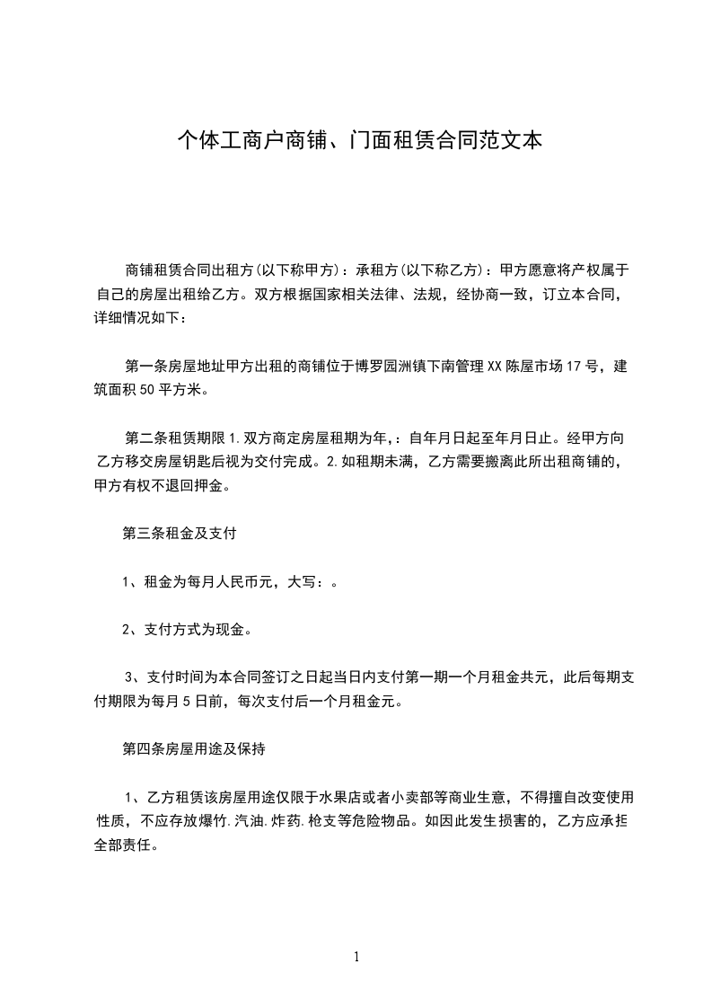 甲方出租的商铺位于________县________镇下南管理____________,建筑面积________平方米。