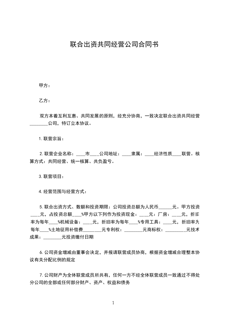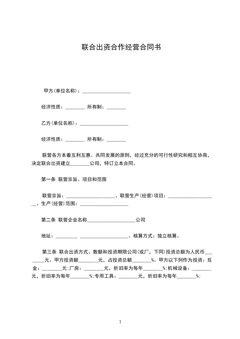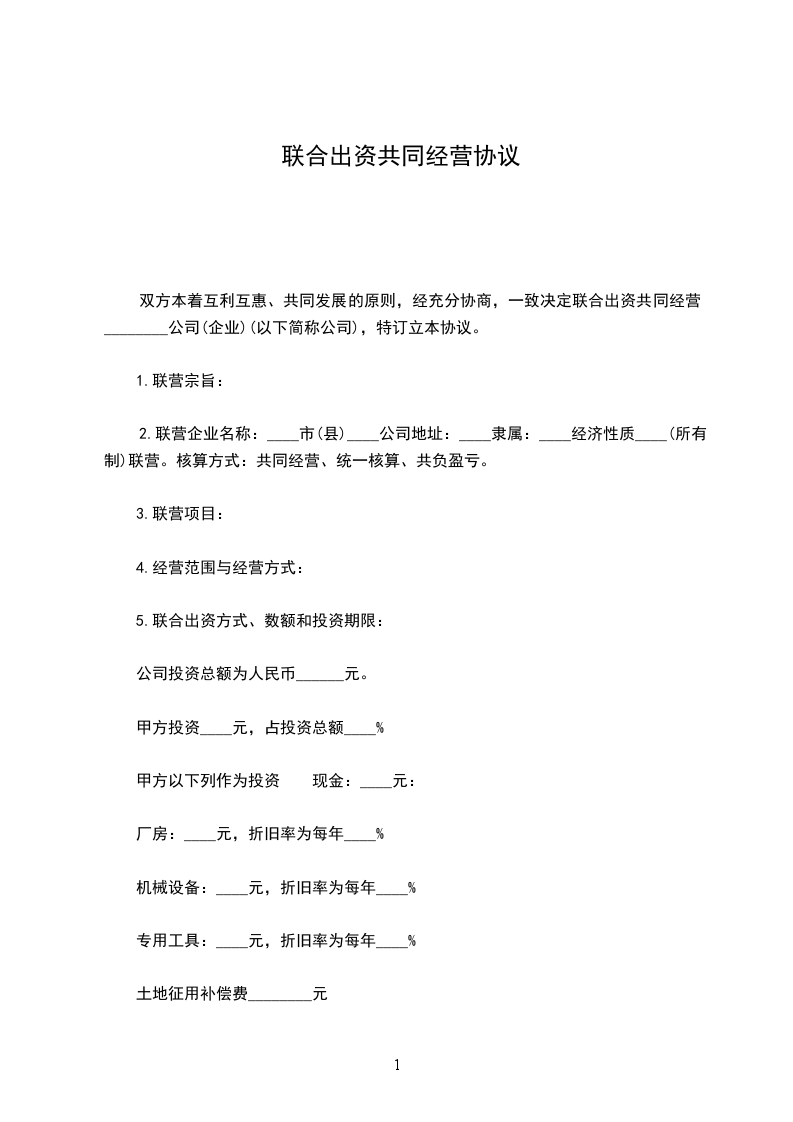 双方本着互利互惠、共同发展的原则,经充分协商,一致决定联合出资共同经营________公司(企业)(以下简称公司),特订立本协议。