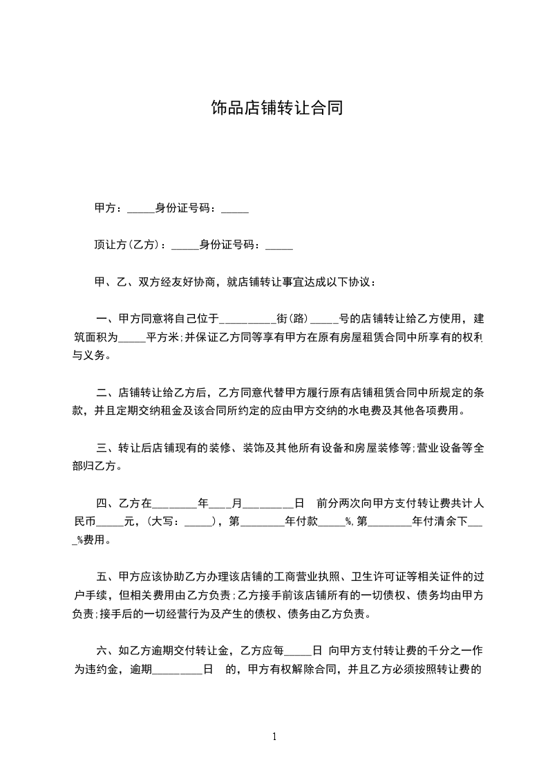 一、甲方同意将自己位于__________街(路)_____号的店铺转让给乙方使用,建筑面积为_____平方米;并保证乙方同等享有甲方在原有房屋租赁合同中所享有的权利与义务。