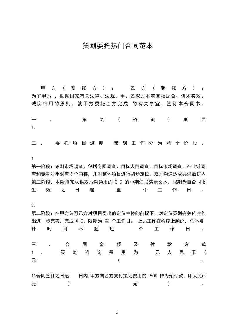 1. 策划咨询费用为 元人民币(