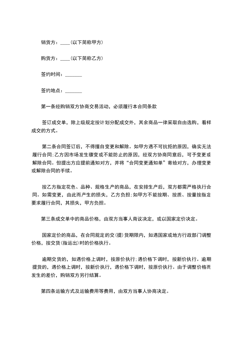 签订成交单,除上级规定按计划分配成交外,其余商品一律采取自由选购,看样成交的方式。