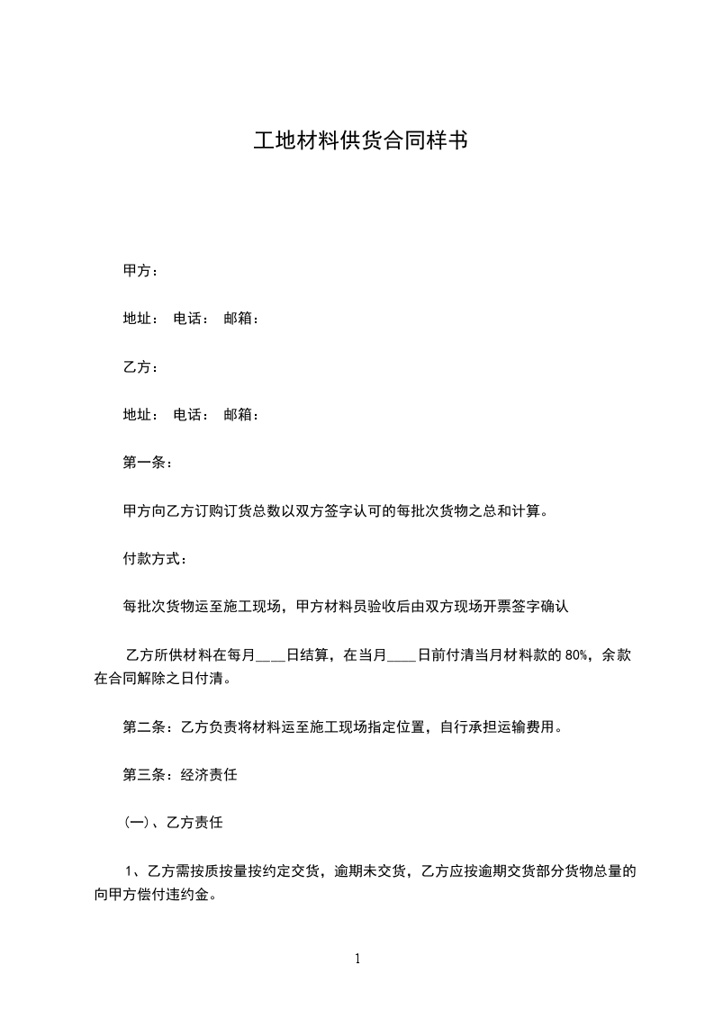 乙方所供材料在每月____日结算,在当月____日前付清当月材料款的80%,余款在合同解除之日付清。