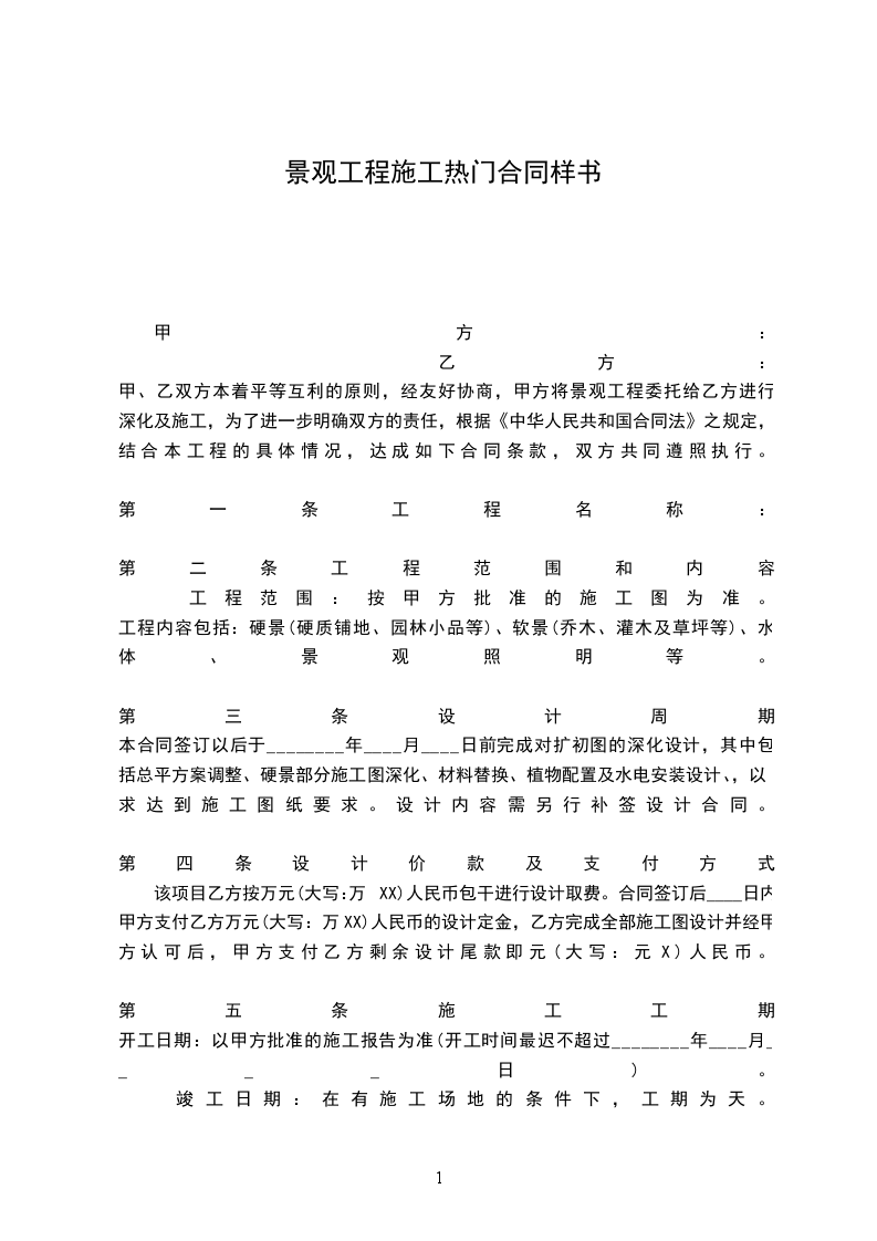 甲、乙双方本着平等互利的原则,经友好协商,甲方将景观工程委托给乙方进行深化及施工,为了进一步明确双方的责任,根据《中华人民共和国民法典》之规定,结合本工程的具体情况,达成如下合同条款,双方共同遵照执行。