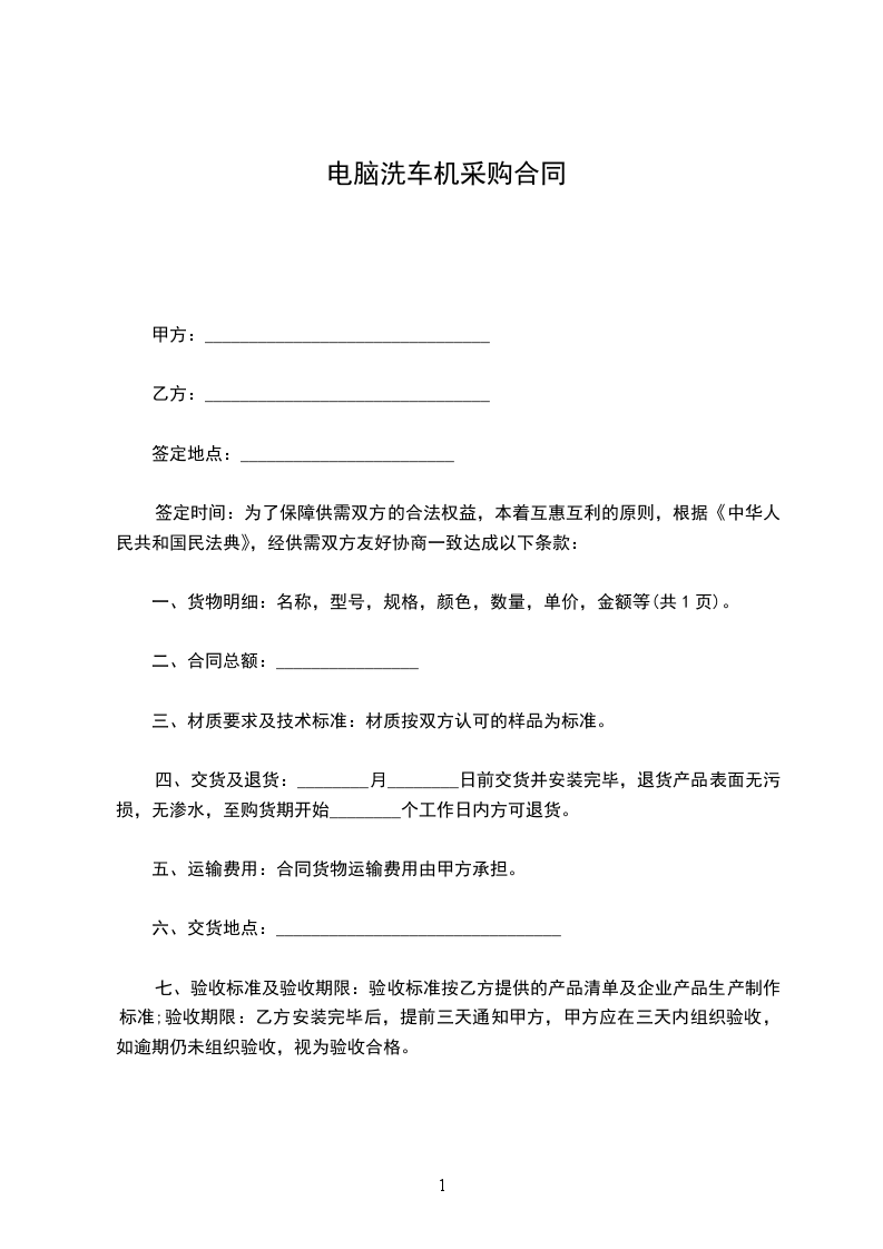 一、货物明细:名称,型号,规格,颜色,数量,单价,金额等(共1页)。