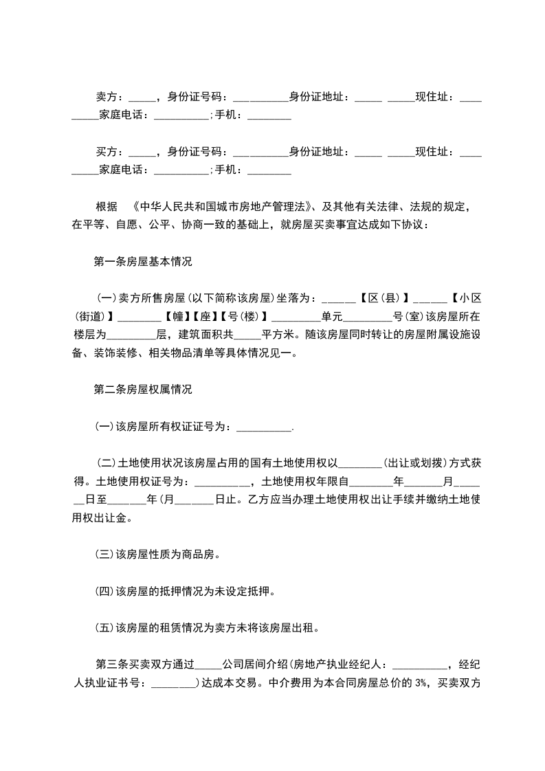 第一条、房屋情况