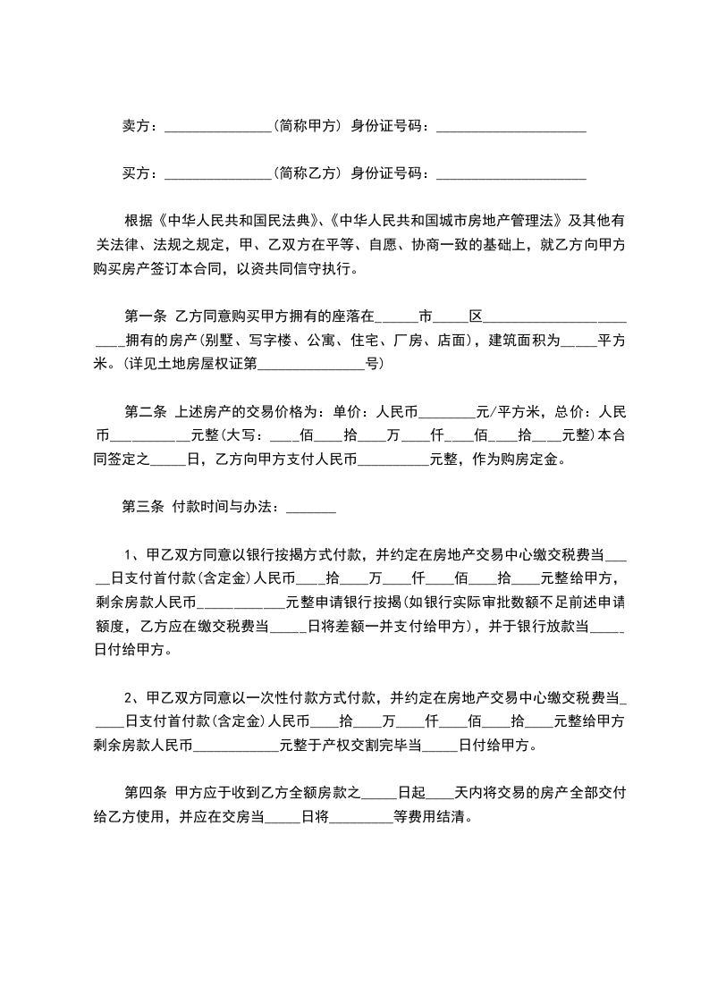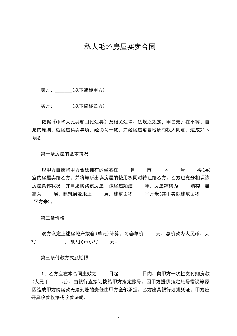 根据《中华人民共和国民法典》、《中华人民共和国城市房地产管理法》及其他有关法律、法规之规定,甲、乙双方在平等、自愿、协商一致的基础上,就乙方向甲方购买私有住房,达成如下协议: