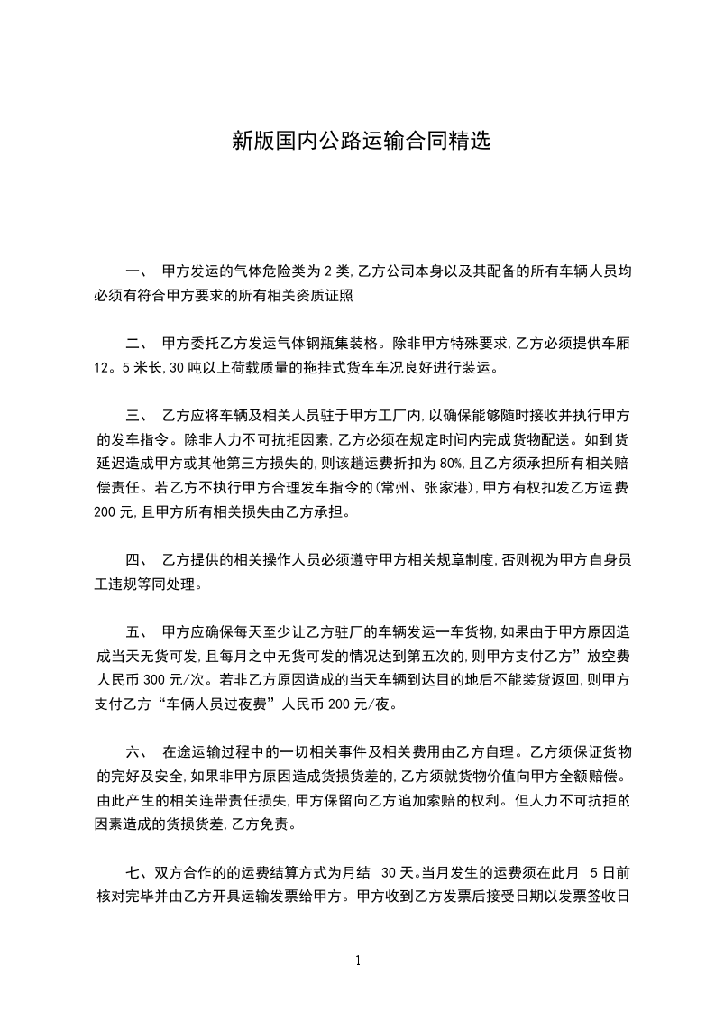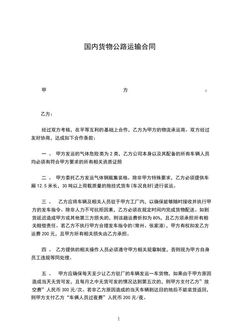 一 、 甲方发运的气体危险类为2类,乙方公司本身以及其配备的所有车辆人员均必须有符合甲方要求的所有相关资质证照