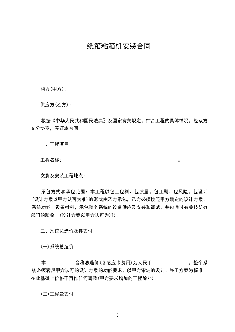 一、合同价款及付款方式