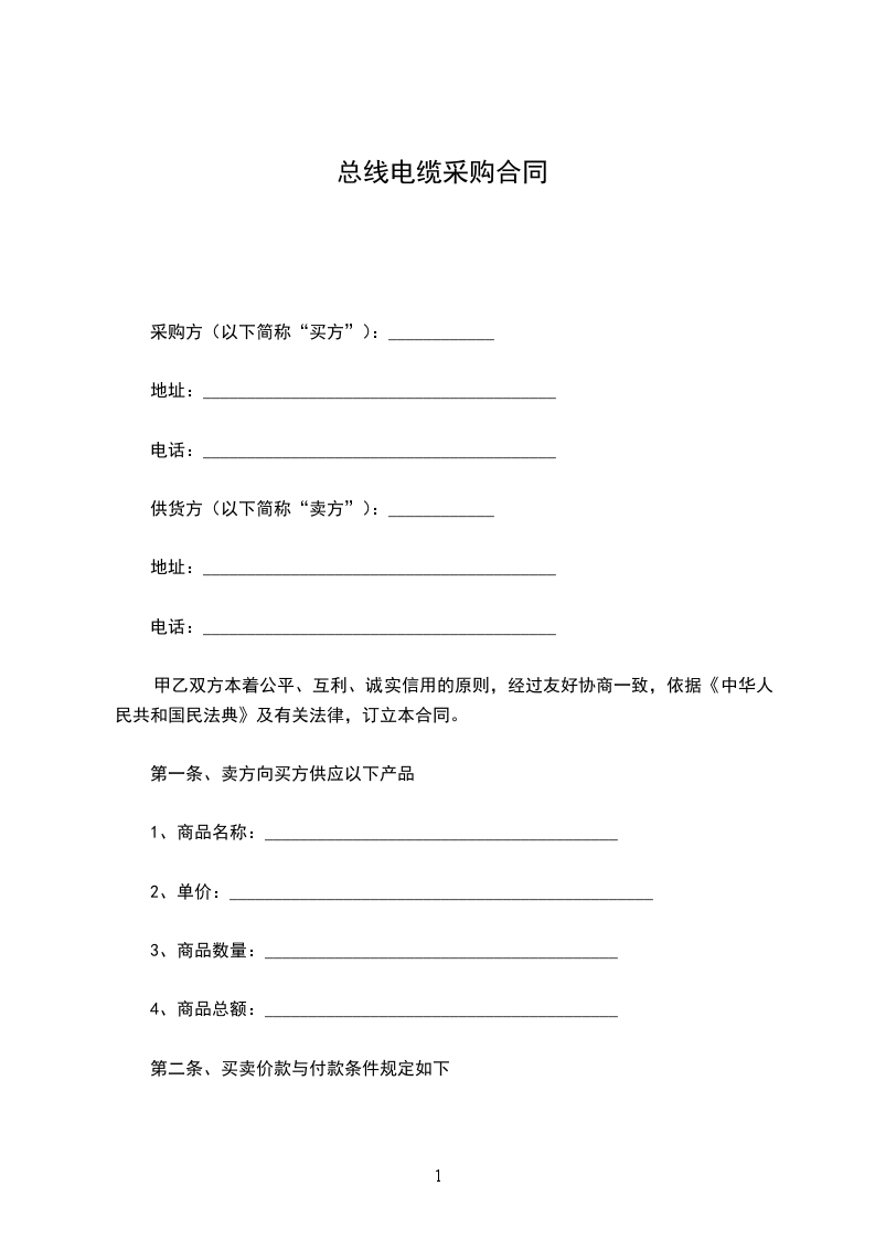 第一条、卖方向买方供应以下产品