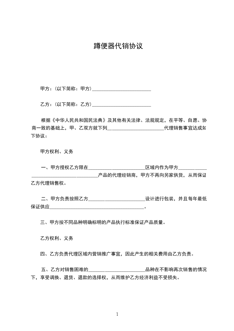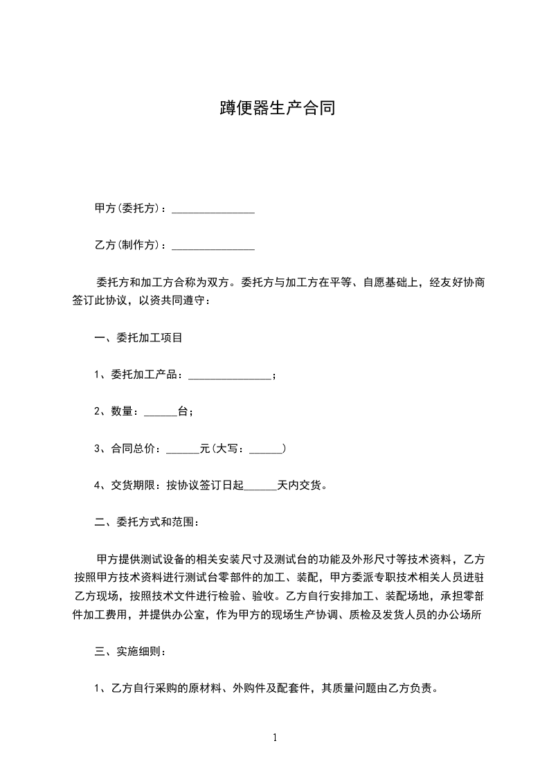 1、交货方式:所有货物由乙方送往双方共同约定的交货地点,乙方只负责从至____________之间的运输费用。