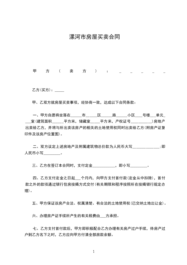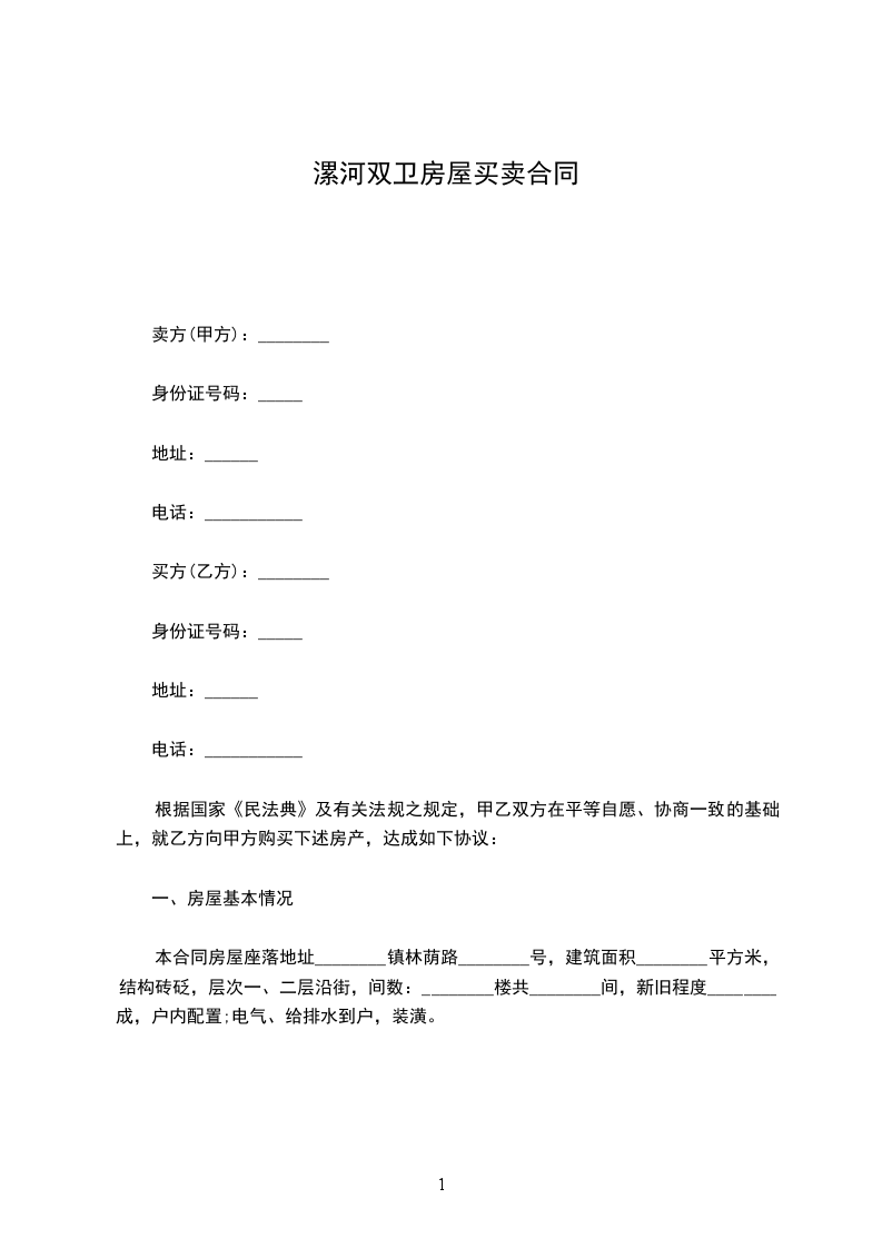 第一条乙方同意购买甲方拥有的座落在______市_____区______________拥有的房产(别墅、写字楼、公寓、住宅、厂房、店面),建筑面积为_____平方米。(详见土地房屋权证第_____号)