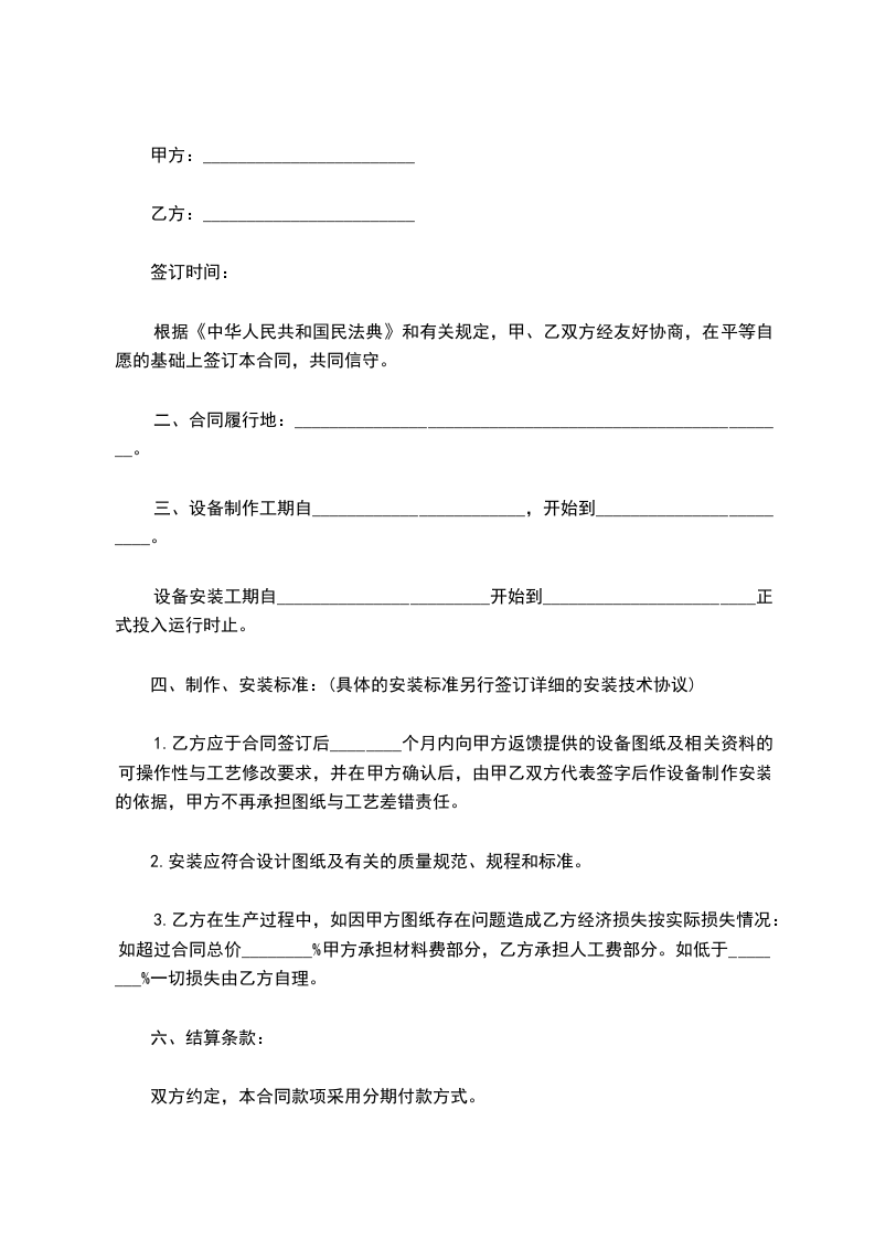 五、付款方式:乙方自签订合同______日内预付货款的100%。剩余货款乙方收货且验收确认后,_________日内付清。