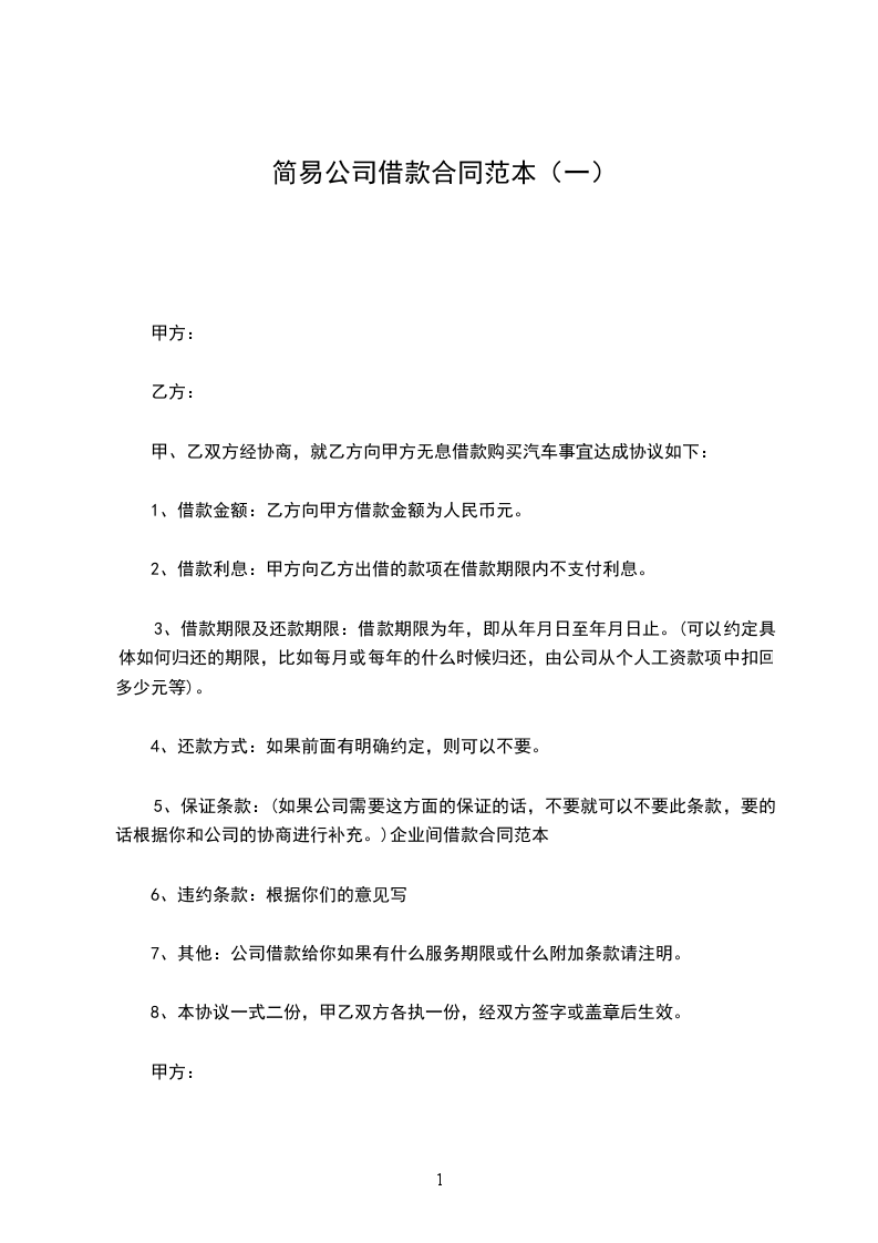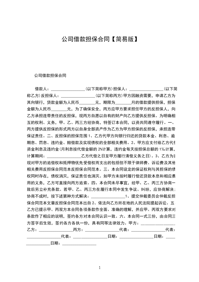 5、保证条款:(如果公司需要这方面的保证的话,不要就可以不要此条款,要的话根据你和公司的协商进行补充。)企业间借款合同范本