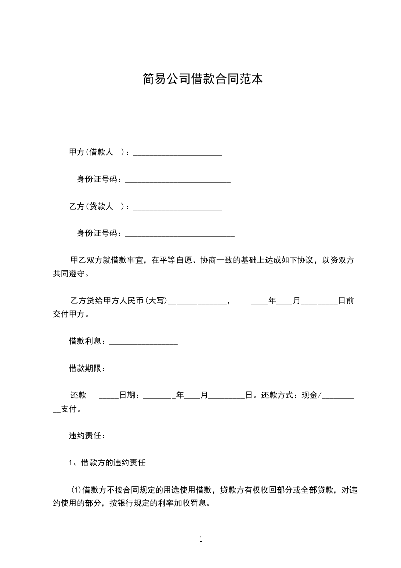 1、借款金额:乙方向甲方借款金额为人民币_____元。