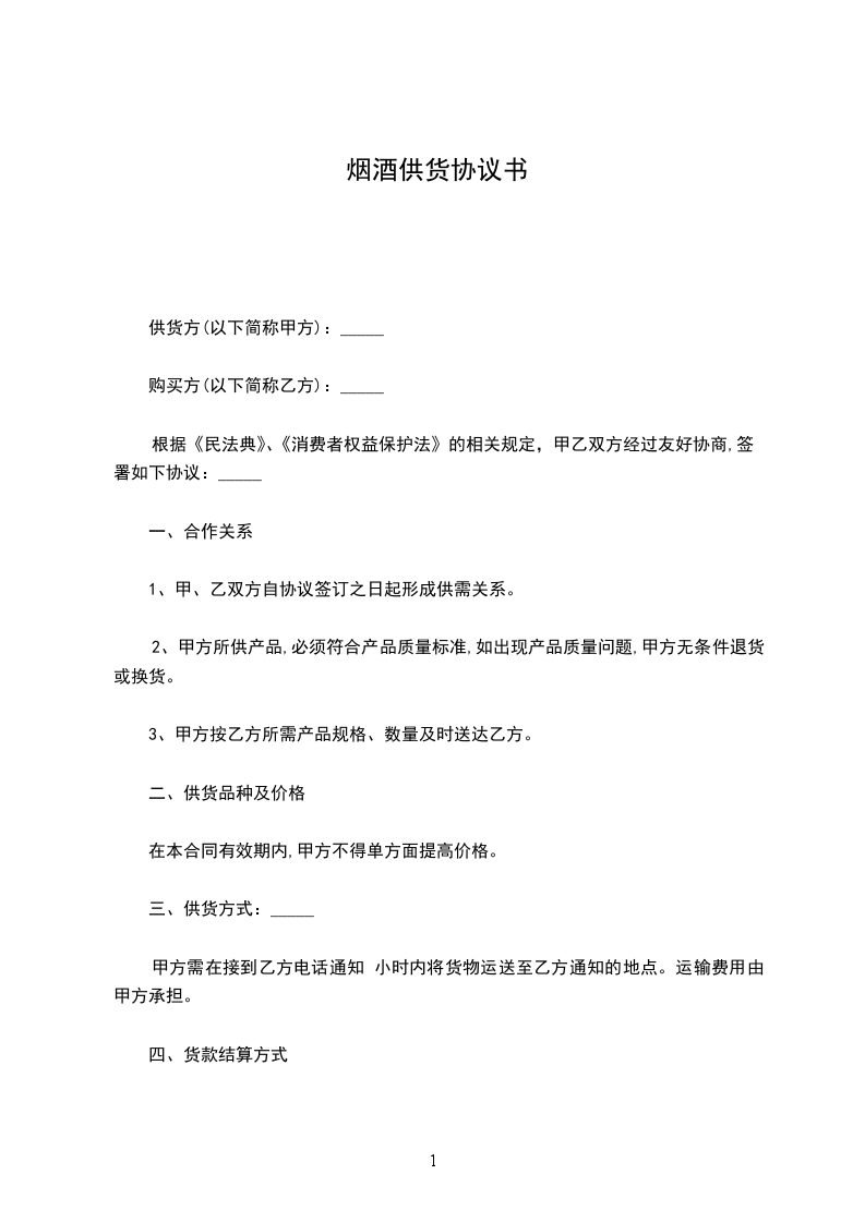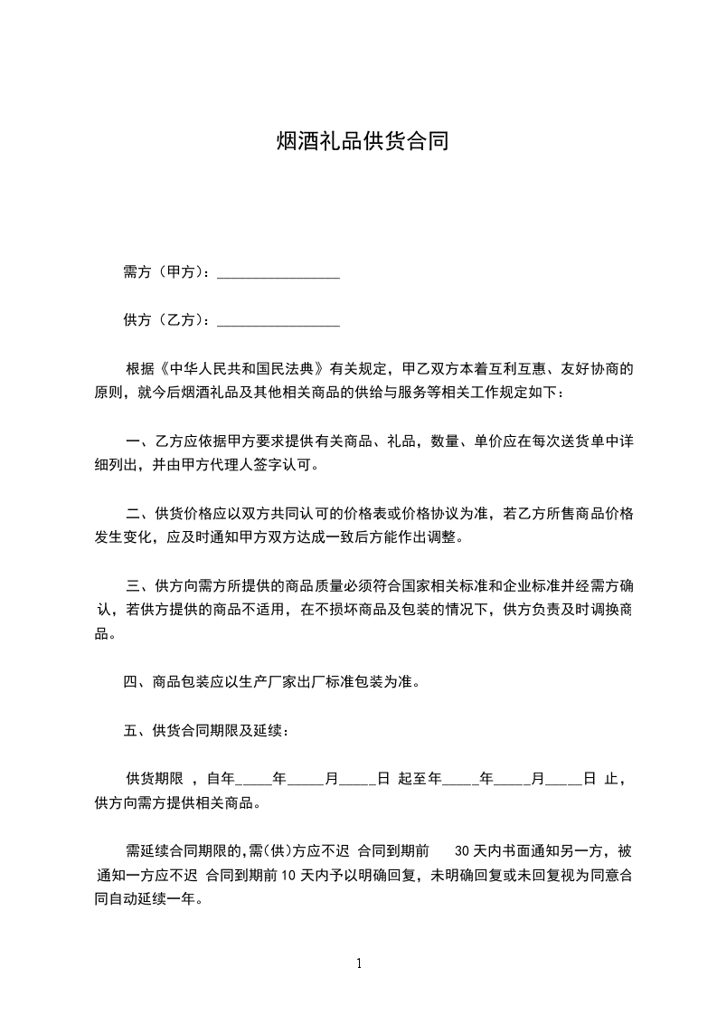 供货单位:_________(以下简称乙方)