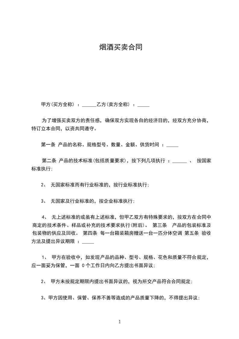 第一条其产品名称、规格、质量(技术指标)、单价、总价等。