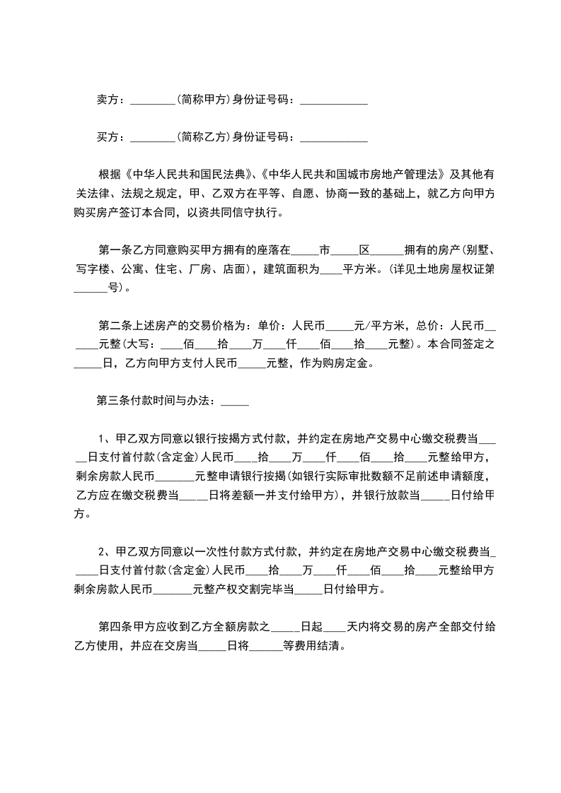 1、甲方自愿将坐落在______区的房屋(以下简称“该房屋”)出售给乙方。乙方对该房屋已作充分了解并实地看房,对该房屋现状无异议,愿意购买该房屋。